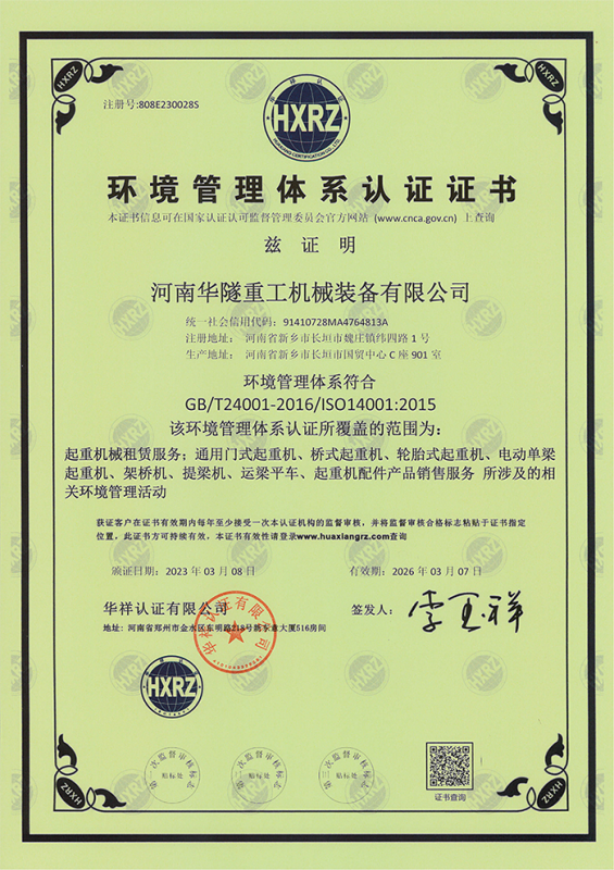河南華隧重工機械裝備有限公司主要從事通用門式起重機、橋式起重機、電動單梁起重機,輪胎式起重機、架橋機、提梁機、遠梁平車、鋼絲繩電動萌蘆、卷揚機、起重配件制造、銷售:起重機械租賃、安裝和維修,起重設備園收,機械設備維修,鋼結構工程承包,橋梁工程及技術咨淘服務,銷售五金制品、機電設備:建設工程監理,建設工程設計,各類工程建設活動,建筑勞務分包,建筑物折除作業,施工作業,工程管理服務,土石方工程施工,裝如發運。  公司已通過IS0國際質量、環境、健康與安全三合一標準認證,特種設備制造許可證和特種設備安裝改造維修許可證。擁有完熟的質量管理體系。嚴格的管理制度,強大的生產能力和先進的檢測手段,在保證產品質量的同時,也具備了極強的市場競爭力?! 」緢猿挚萍紕撔聻槔砟睿a品質量為核心,注重信譽,建立了減信可靠、快捷、思速。便利周到的售后服務網絡?! ∥覀儞碛械募夹g專家和技術服務隊伍為客戶提供充善的售前技術支持和全天候的售后服務體系,讓您無后顧之憂,享受一站式的超值服務?!  叭A隧重工,伴您成功“是華隧重工永遠的宗指,真被的希望與各界朋友攜手并進。共創輝準!